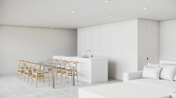 この建築は千葉県八千代市の閑静な住宅街に建つ、地上2階建ての専用住宅である。1階は各ベッドルームとバスルームのプライバシーが求められる室を計画し、各室が全てコートに面した計画がなされている。2階はLDKのパブリックな室を計画し、1面全てを大開口にすることで光溢れる空間を作り出している。外観はホワイトを基調とし、シンプルでミニマムな姿をしている。